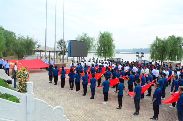 “身為華紡員工,時刻銘記我是炎黃子孫……”這是9月14日在周恩來紀念園(濱州)內(nèi)出現(xiàn)的一幕情景:公司在組織有500多名員工代表參加的“向國旗敬禮”主題活動中,現(xiàn)場發(fā)布了《華紡員工熱愛祖國誓詞》,并在領(lǐng)誦者團委書記張巖冰帶領(lǐng)下齊聲誦出。據(jù)了解,公司為慶祝新中國成立70周年,進一步激發(fā)廣大員工熱愛祖國、熱愛事業(yè)的熱情,組織開展了一系列內(nèi)容豐富的主題活動。