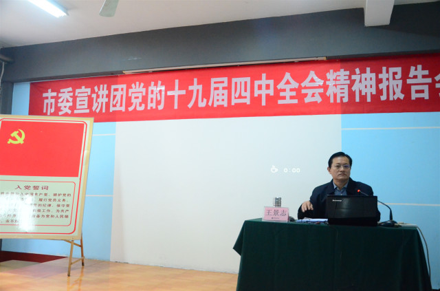 導(dǎo)讀:11月30日,市委宣講團(tuán)成員,市生態(tài)環(huán)境局黨組成員、副局長(zhǎng)王景志來(lái)到公司,為黨員代表和骨干管理者代表宣講了黨的十九屆四中全會(huì)精神。