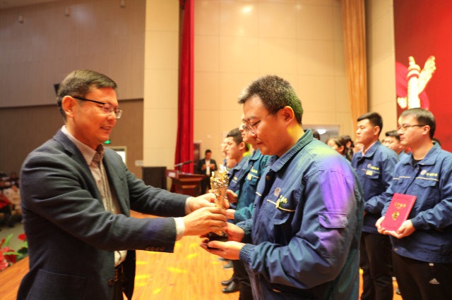 1月4日,公司在持續(xù)深化精益生產(chǎn)年度總結(jié)動(dòng)員大會(huì)上,公司對(duì)獲得2019年度(第三屆)“華紡工匠”的5位員工進(jìn)行了表彰,副總經(jīng)理盛守祥為他們頒發(fā)獎(jiǎng)杯。