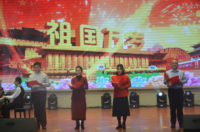 詩朗誦《彩繪的中國》(王榮梓、張衛(wèi)紅、文峰、王新東;鋼琴伴奏:齊舞飛揚       歌伴舞《奔跑》(王東、王巖軍;伴舞:員工子女)舞蹈《天天向上》( 張永生、朱俊名、李曉英、竇吉鵬)
