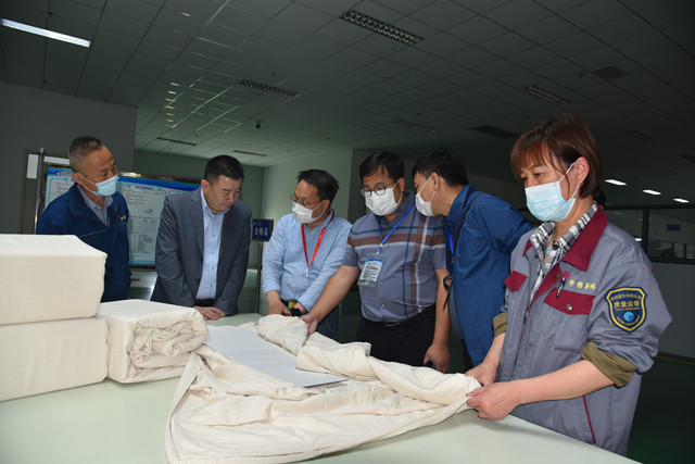 5月13日,蘇美達(dá)股份黨委委員、蘇美達(dá)輕紡公司董事長(zhǎng)范雯燁一行,來到公司參觀座談。軍需裝備研究所郝新敏博士,公司總經(jīng)理閆英山,黨委副書記、供應(yīng)鏈總監(jiān)盛守祥,工程技術(shù)研究院院長(zhǎng)孫紅玉陪同參觀座談。
