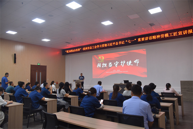 為深入學(xué)習(xí)宣傳貫徹習(xí)近平總書記在慶祝中國共產(chǎn)黨成立100周年大會上的重要講話精神,持續(xù)推進黨史學(xué)習(xí)教育,由濱州市總工會主辦的“我為群眾辦實事”學(xué)習(xí)宣傳貫徹習(xí)近平總書記“七一”重要講話精神勞模(工匠)宣講報告會首次宣講,在公司會議中心舉辦。