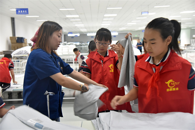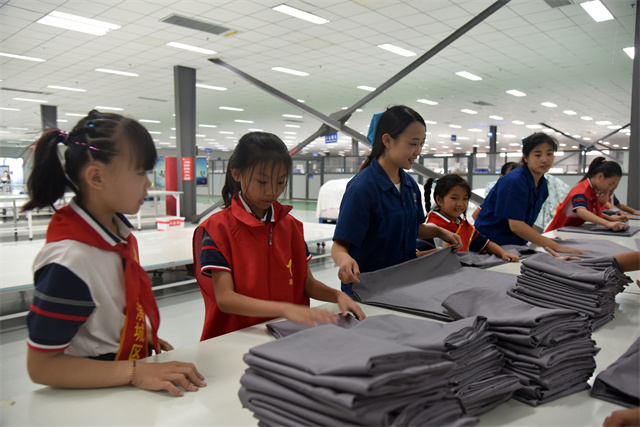 導(dǎo)讀:9月23日,濱城區(qū)玉龍湖小學(xué)四年級學(xué)生在老師帶領(lǐng)下走進(jìn)公司,實(shí)地參觀了公司的生產(chǎn)車間以及部分展廳,現(xiàn)場體驗(yàn)了家紡產(chǎn)品驗(yàn)整及包裝等生產(chǎn)環(huán)節(jié),感受勞動的艱辛與快樂。