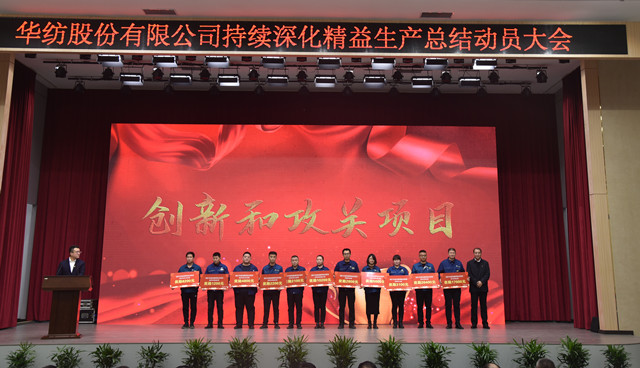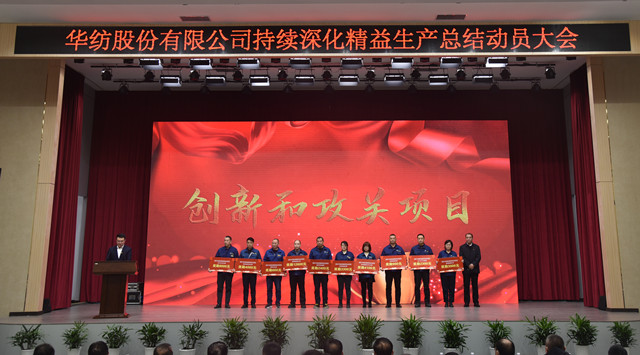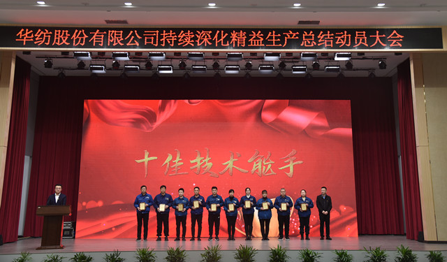 會上,公司董事長盛守祥為2021年度優(yōu)秀團隊、勞動模范頒獎;總經(jīng)理閆英山為華紡工匠、十佳精益輪班(工段)長、十佳技術(shù)能手、十佳操作能手、優(yōu)秀員工代表頒獎;質(zhì)量總監(jiān)李風明為優(yōu)秀CQI項目、創(chuàng)新攻關(guān)項目、優(yōu)秀精益機組代表頒獎。公司對在過去一年的“我與效益提升”工作中表現(xiàn)良好的原料運營公司等10個部門給予了通報表揚;“退城進園”暨“智能綠色工廠建設項目”整體建設與搬遷,成為“2021-華紡年度感動”內(nèi)容。