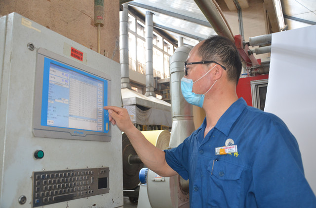 生產(chǎn)一線操作員工在查看機臺能耗及工藝執(zhí)行情況