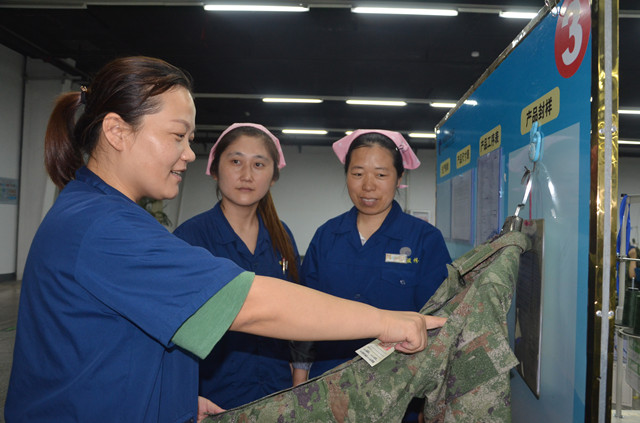 服裝車間員工現(xiàn)場討論推進開源節(jié)流和質(zhì)量提升工作
