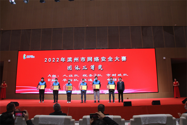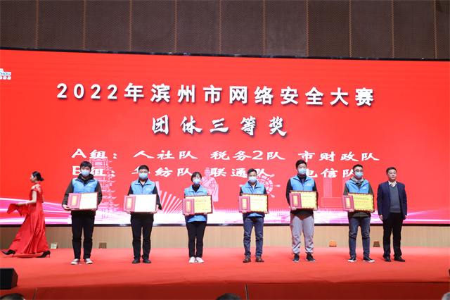 近日,首屆濱州市“技能之星”職業(yè)技能大賽——2022年濱州市網(wǎng)絡(luò)安全大賽頒獎典禮在渤海先進技術(shù)研究院舉行。公司“華紡隊”獲本次大賽團隊三等獎,崔乘耀獲個人一等獎,張航、張濤、邢訓(xùn)彬獲個人優(yōu)勝獎。