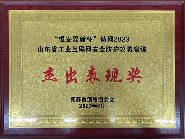 6月19日,由山東省通信管理局組織的“恒安嘉新杯”鑄網(wǎng)2023山東省工業(yè)互聯(lián)網(wǎng)安全防護(hù)技能競賽暨攻防演練在濟(jì)南舉辦,由公司信息中心組成的華紡隊以卓越的表現(xiàn)獲得由山東省通信管理局頒發(fā)的“杰出表現(xiàn)獎”。