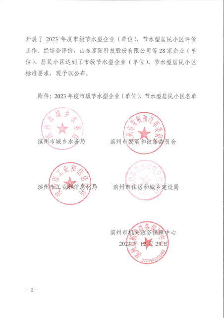 喜報!公司獲評2023年度濱州市節(jié)水型企業(yè)