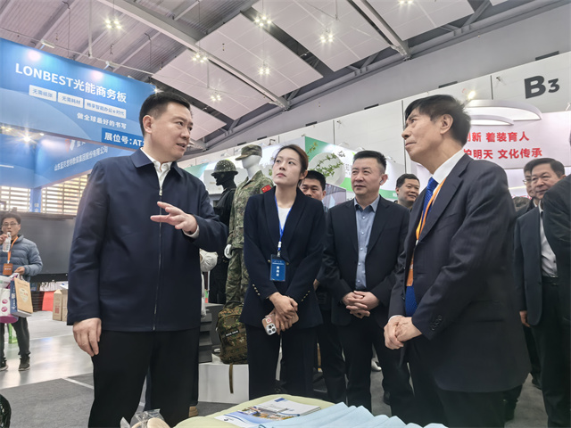 展會期間,教育部關心下一代工作委員會常務副主任王富,濱州市委常委、副市長屈躍寬等領導來到公司展位前參觀指導,詳細了解了產品的核心優(yōu)勢和應用價值。領導們對公司在教育紡織品領域的創(chuàng)新能力和技術優(yōu)勢給予了充分肯定,并對公司未來在教育領域的發(fā)展寄予厚望。