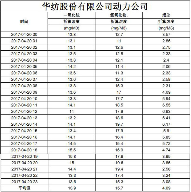 煙氣排放數(shù)據(jù)信息公開(kāi)2017.4.20數(shù)據(jù)