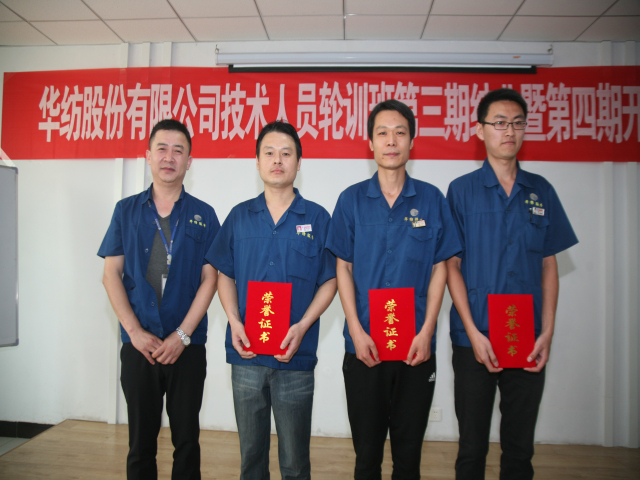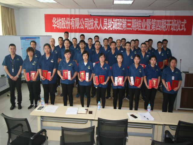 6月18日,公司專業(yè)技術(shù)輪訓(xùn)班第三期結(jié)業(yè)暨第四期開班儀式,在公司工程技術(shù)研究院舉行。儀式上,工程技術(shù)研究院副院長孫紅玉對第三期輪訓(xùn)工作進(jìn)行了總結(jié);總工程師羅維新宣讀了《關(guān)于對染整專業(yè)技術(shù)培訓(xùn)班(第三期)馬士國等35人準(zhǔn)予結(jié)業(yè)的通報》、《關(guān)于對染整專業(yè)技術(shù)培訓(xùn)班(第三期)優(yōu)秀團隊、優(yōu)秀學(xué)員的表彰決定》、《關(guān)于對染整專業(yè)技術(shù)培訓(xùn)班(第四期)學(xué)員組成的通報》;總經(jīng)理閆英山為第三期輪訓(xùn)班結(jié)業(yè)學(xué)員頒發(fā)結(jié)業(yè)證書,為優(yōu)秀團隊花二車間小組及馬士國、李義、陳愛民等三名優(yōu)秀學(xué)員頒發(fā)獎狀證書,為第四期學(xué)員頒發(fā)了專業(yè)學(xué)習(xí)書籍;王金亮、馬士國、商曉峰分別代表往期學(xué)員、本期學(xué)員和下期學(xué)員發(fā)言;公司黨委書記、董事長王力民圍繞堅持“求學(xué)、求知、求真、求實”的作風(fēng)信條做了重要講話。