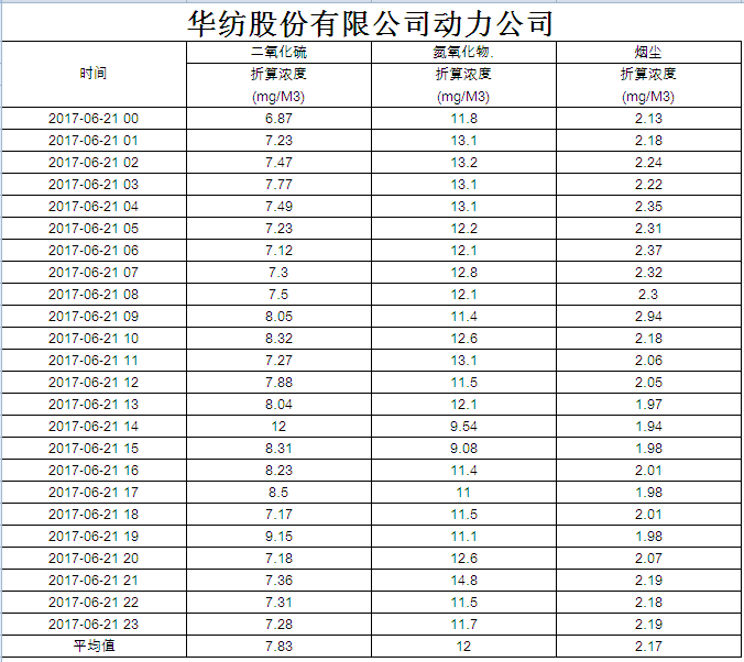 煙氣排放數(shù)據(jù)信息公開(kāi)2017.6.21數(shù)據(jù)