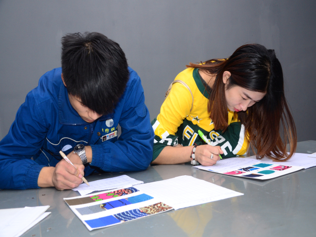 日前,公司質(zhì)量部組織印染車間技術(shù)人員進行了色差、色棋測試。參加此次測試共計153人,分兩天完成,內(nèi)容分為統(tǒng)一目光、色棋排列兩方面。