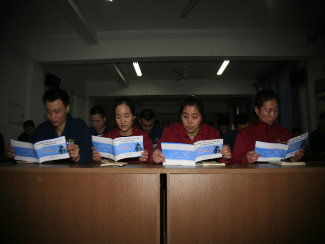 圖為公司向生產(chǎn)一線部分輪班(工段)長發(fā)放《手冊》時(shí)的情形。